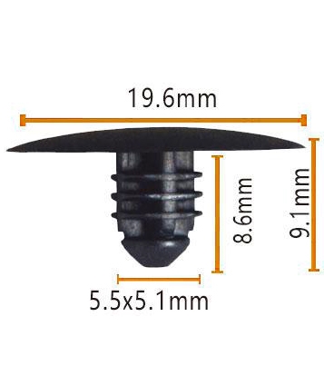 החלק העליון של בורג זה נועד להיות שטוח, בקוטר של 19.6 מ"מ ואורך של 8.6 מ"מ, ומבטיח התאמה קרובה לכל חלקי הרכב. החלק המוגבה באמצע הוא בקוטר 5.5 מ"מ וגובה 5.1 מ"מ. עיצוב ייחודי זה לא רק משפר את אפקט ההידוק של הבורג, אלא גם הופך את תהליך ההתקנה לחלק יותר. החלק התחתון הוא בסיס עגול שטוח בקוטר 9.1 מ"מ, המספק תמיכה יציבה לבורג. הגודל הכולל מסומן בבירור, וזה נוח לך לזהות ולבחור במהירות בעת השימוש.